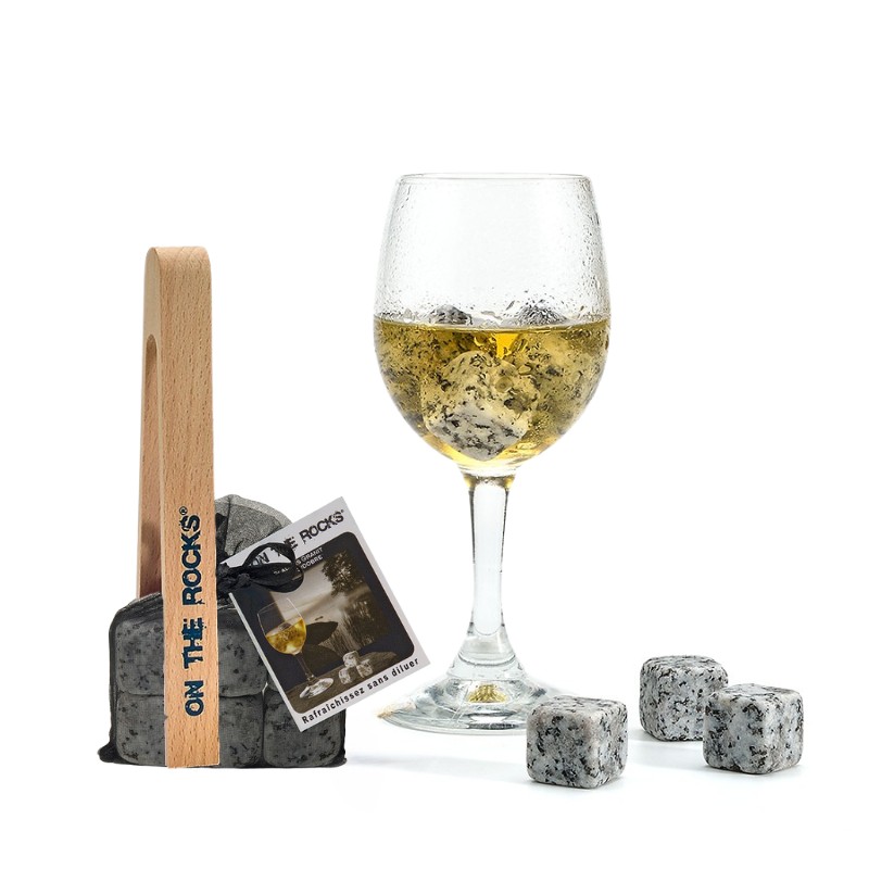 Hommage à la région Occitane, cet ensemble est constitué de 6 glaçons en granit du Massif du Sidobre accompagnés d'une pince en bois de Hêtre.
